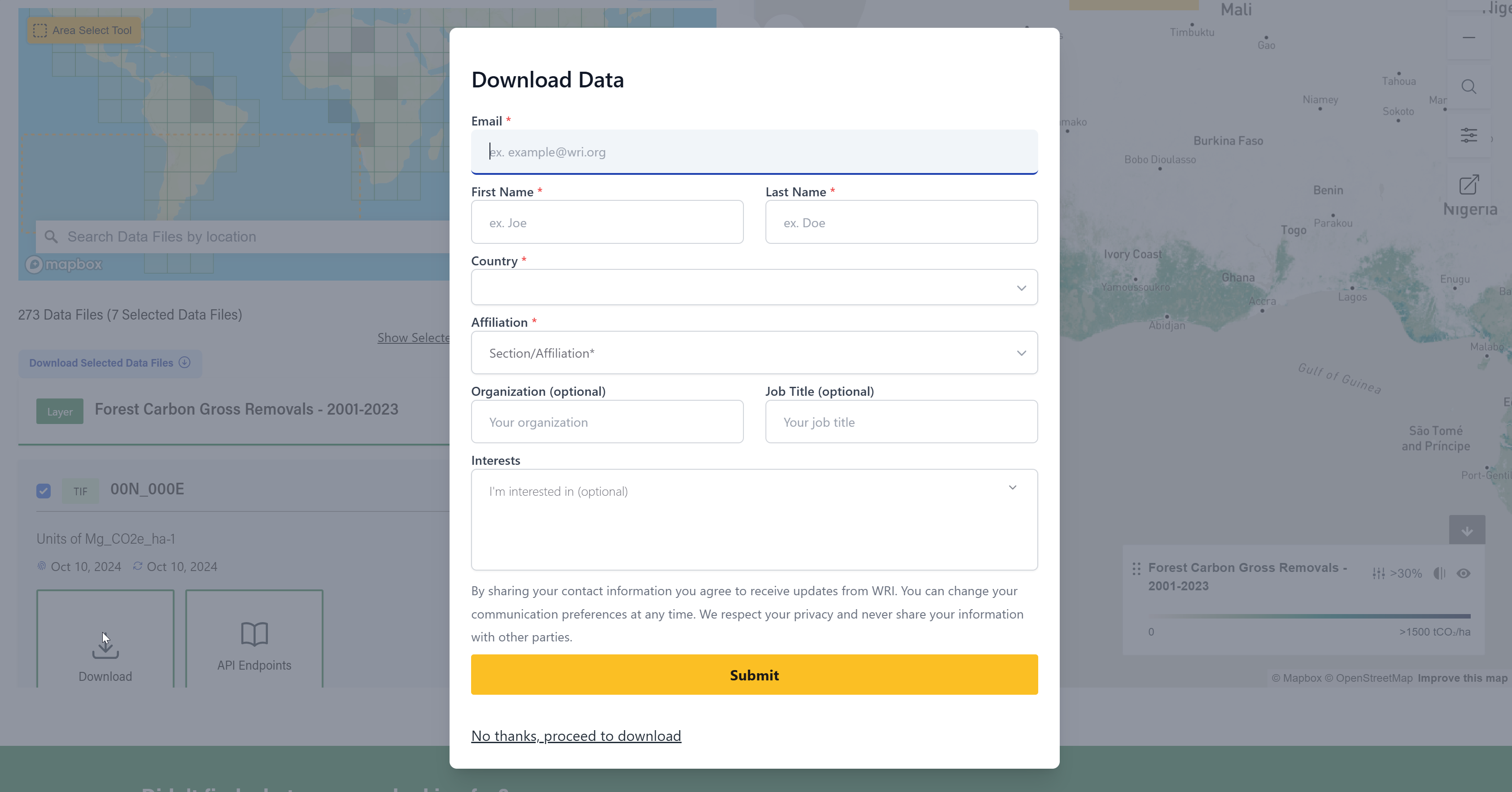 - Step 3: Fill out and submit the form. This form cannot be dismissed. You must provide your email address to receive the files. You might not see this form if you have previously opted into WRI communications on Data Explorer. See Privacy Policy and Cookie Preferences (both links in footer) for more details.