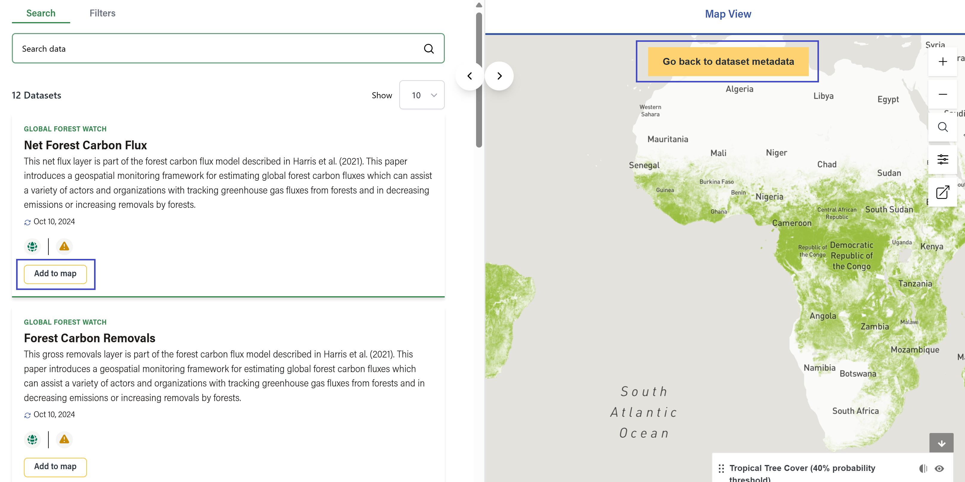 After clicking a dataset, if you want to return to filtered search results from your last query, click ‘Go Back' or use the back button in your browser.