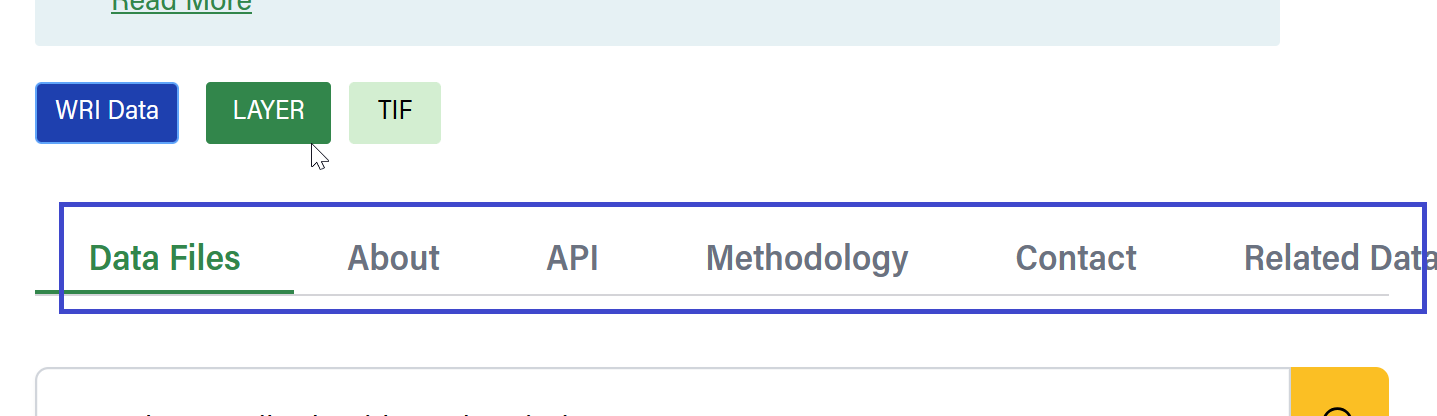 If there is a preview available, that file will appear as the first item in the list. For map layers, this resource is tagged as a ‘Layer’. See Previewing Data section for what you can do with these resource types.